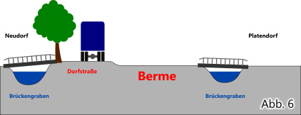 Die Berme ist der Absatz in der Böschung des Straßendammes zum Platendorfer Brückengraben (Abb. 6). Land, das so schwer dem Moor abgerungen wurde, verkauften nur wenige Eigentümer.